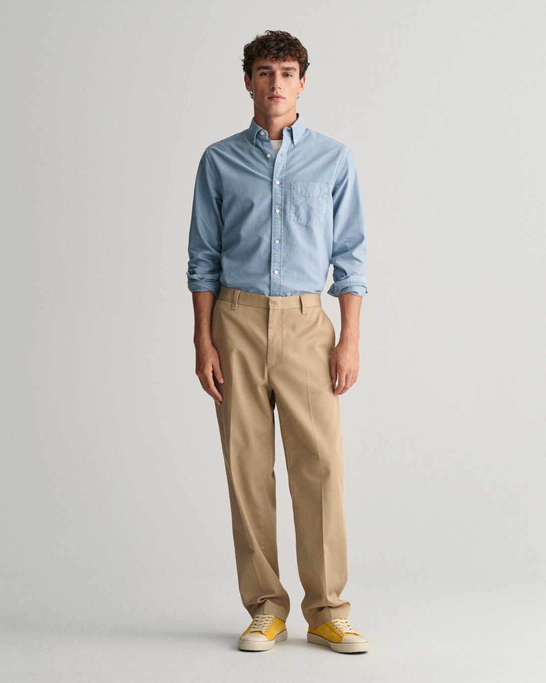 Cette chemise en 100 % coton bio est fabriquée à partir d’un tissage Oxford doux déniché dans nos archives. Teint en pièce pour révéler un aspect blanchi par le soleil, ce modèle présente un col boutonné classique, des poignets ajustables et un ourlet incurvé. Orné d’un logo GANT brodé sur la poche poitrine, il est agrémenté de boutons en polyester recyclé et d’un pli creux avec notre patte d’accrochage caractéristique dans le dos.