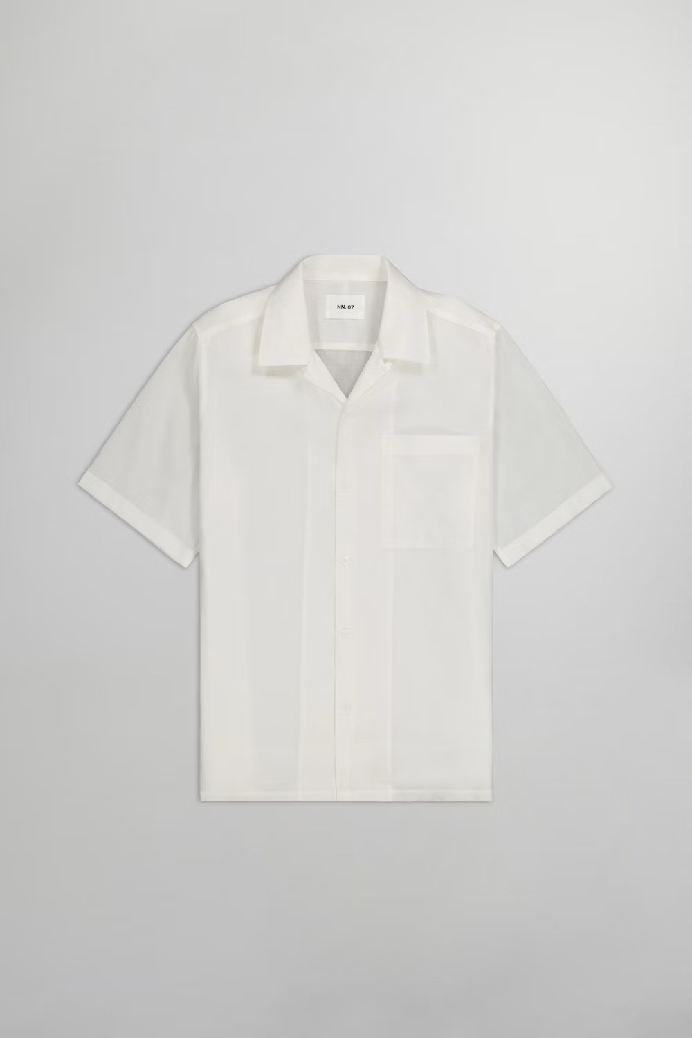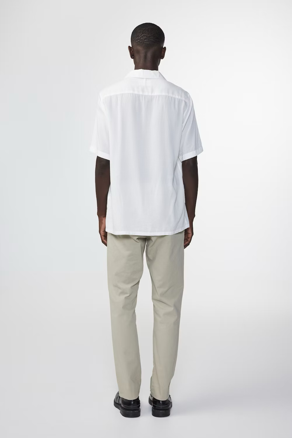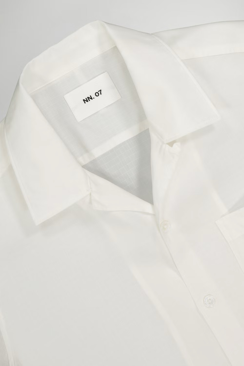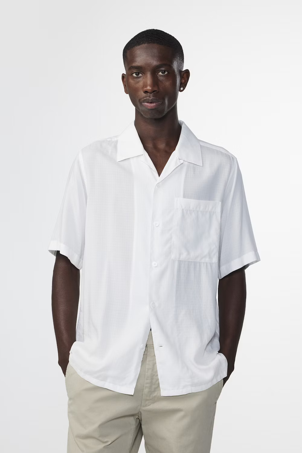 Chemise fabriquée dans un tissu lyocell TENCEL™ lisse. Cette pièce est conçue avec un col ouvert et une seule poche poitrine. Surplonné de boutons en nacre.