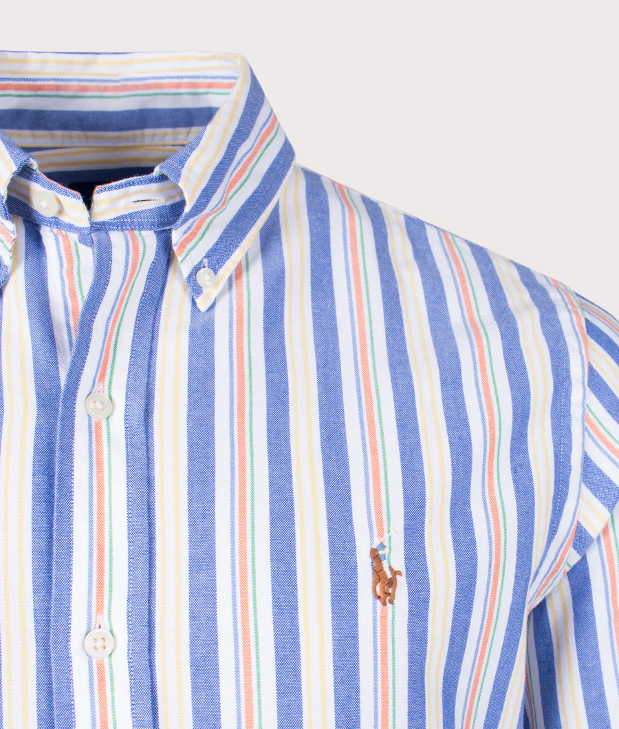 La chemise rayée légère Custom Slim Fit en « Blue/White Multi » de Polo Ralph Lauren est taillée dans une coupe slim pour un port confortable. Détaillé avec une fermeture entièrement boutonnée, un col boutonné et des poignets boutonnés. Fini avec le poney emblématique de Polo Ralph Lauren, qui a été brodé sur la poitrine.