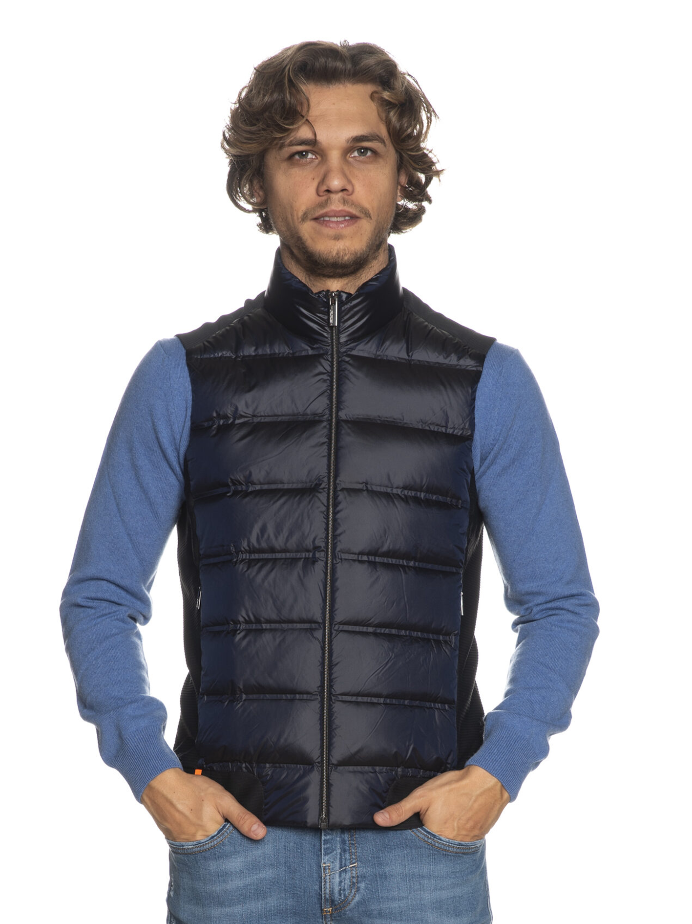 Sans manches R.R.D. Polaire Spand Duck bleu marine noir courte fermeture zippée matelassée avec rembourrage en duvet sur le devant du buste et col roulé et ottoman sur le dos du buste