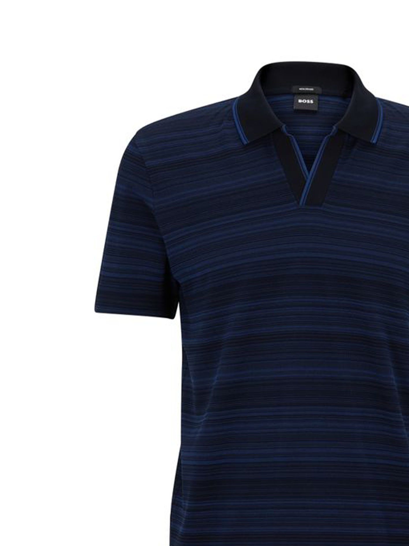 Un polo raffiné à manches courtes, signé BOSS Homme. Ce polo Regular Fit à la coupe facile à porter est confectionné en coton mercerisé au tissage jacquard quadricolore, pour un confort optimal en été.