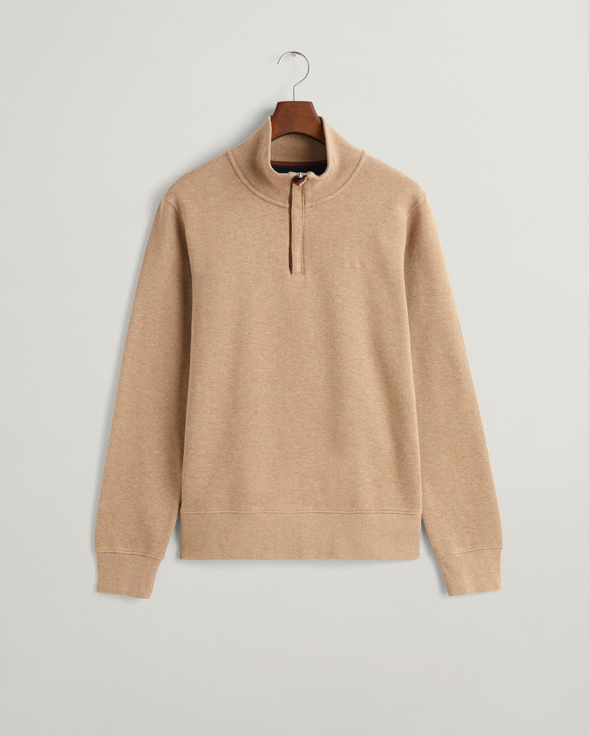Plus habillé qu’un sweat-shirt, mais tout aussi confortable, ce modèle se porte idéalement sur une chemise pour le bureau ou sur un t-shirt pour le week-end. Entièrement confectionné en coton doux, il présente une coupe regular et un col à demi-zip. L’ensemble est complété par des finitions imitation daim, une fermeture en métal argenté et un logo GANT ton sur ton brodé sur la poitrine.