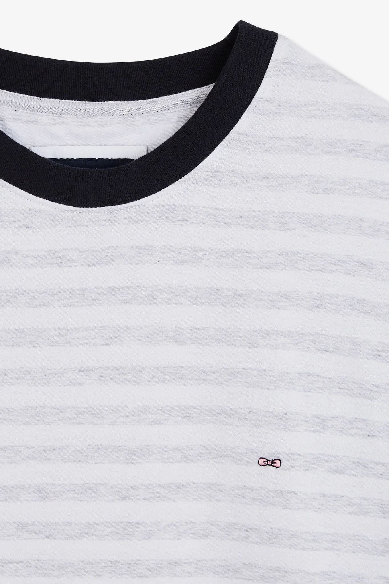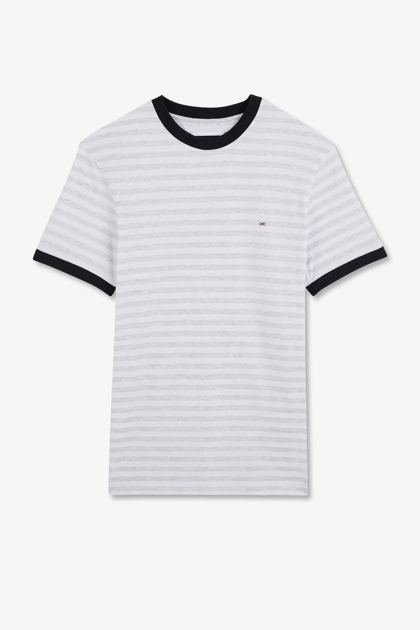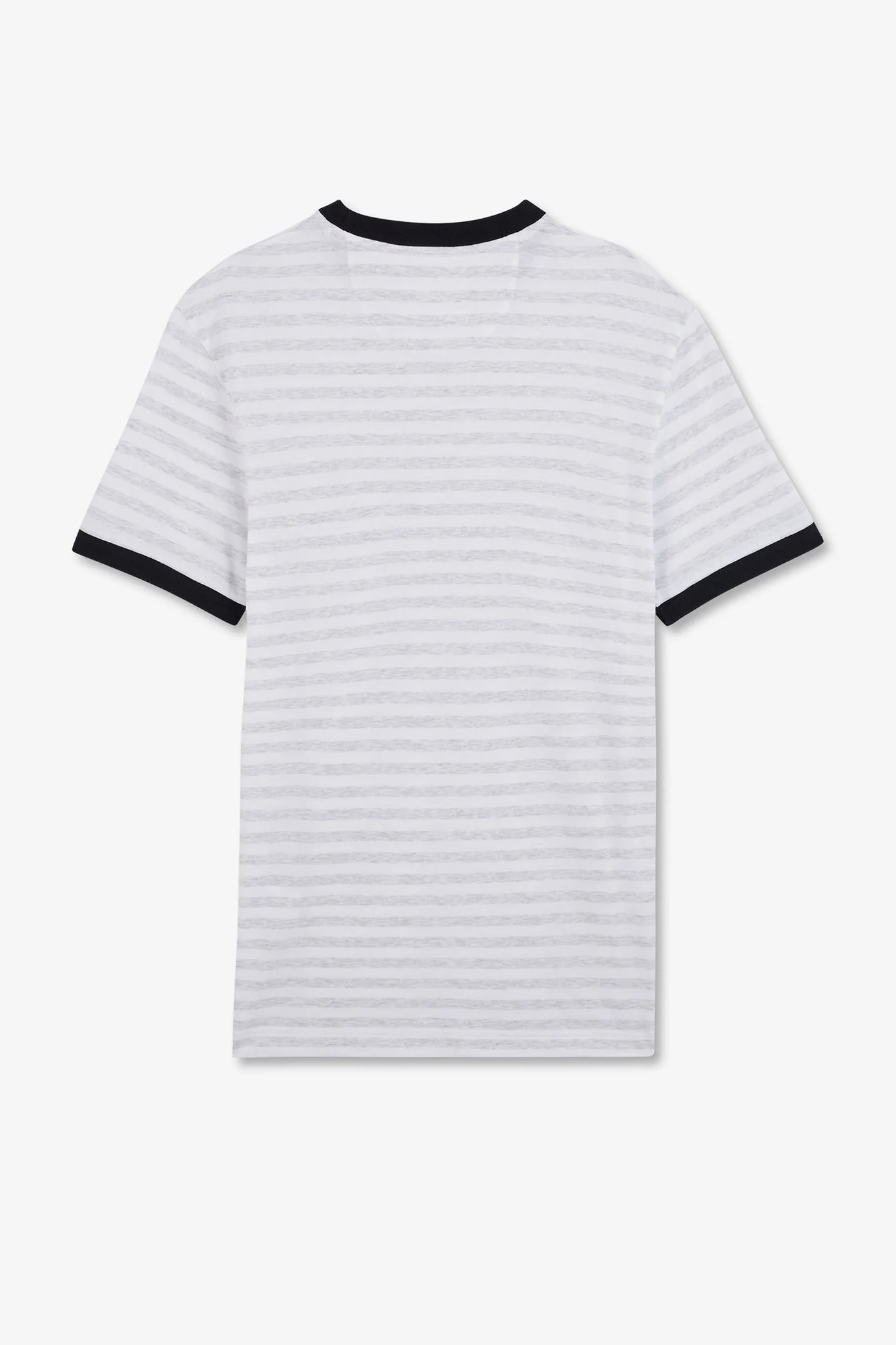 Ce t-shirt se distingue par ses rayures horizontales grises sur fond blanc, créant un effet visuel doux et raffiné. Les finitions noires au niveau du col rond et des manches ajoutent une touche de contraste élégante, faisant ressortir la sobriété et l’élégance de la pièce. Le logo emblématique Eden Park, délicatement brodé sur la poitrine, rappelle subtilement l’origine de la marque et sa réputation pour la qualité et le style.